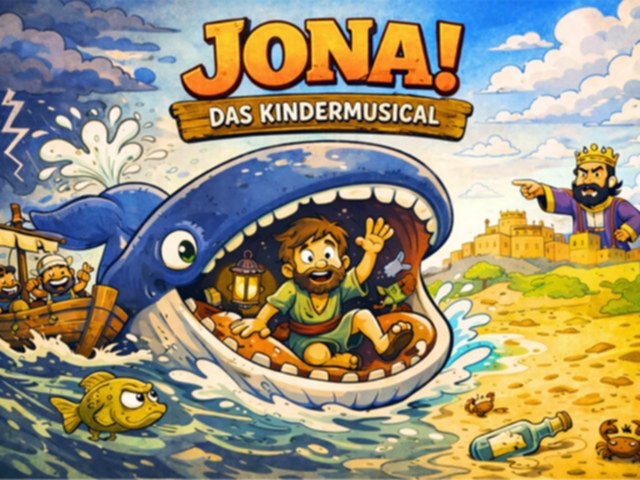 Wir bringen ein Musical zur Aufführung, das Dieter Wagner und Daniel Hess geschrieben hat. Es erzählt die unglaubliche Geschichte von Jona und seinem waghalsigen Abenteuer.